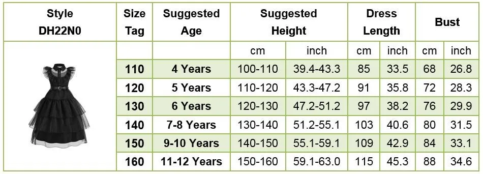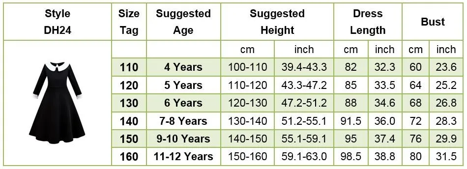 Dress Name: Children Addams Costume Baby Girls Family Cosplay Halloween Costume Kids Family Dancing Black Dress Wednesday Pageant Fantasy